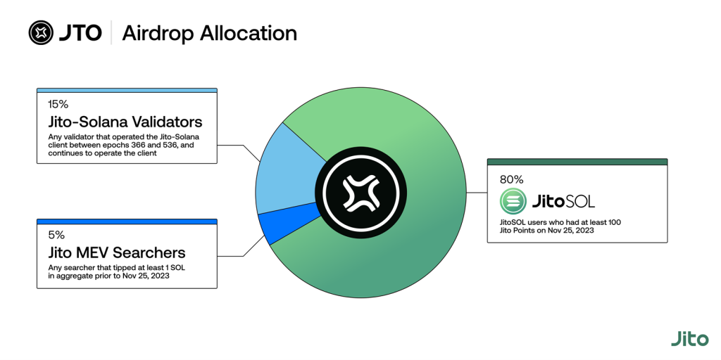 JitoSOL用户:超过100积分的JitoSOL积分持有者,快照时间为今年1/1至11/25之间,分配空投份额80%。